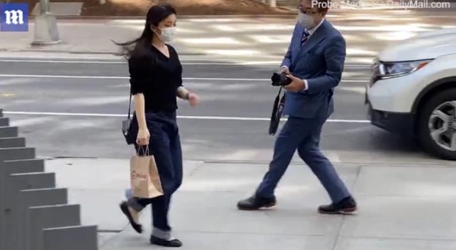 Cô rảo bước khá nhanh trên đường do có sự xuất hiện của một phóng viên dùng camera hướng ống kính về phía cô ở cự ly khá gần. Không rõ phóng viên này làm việc cho đơn vị truyền thông nào.