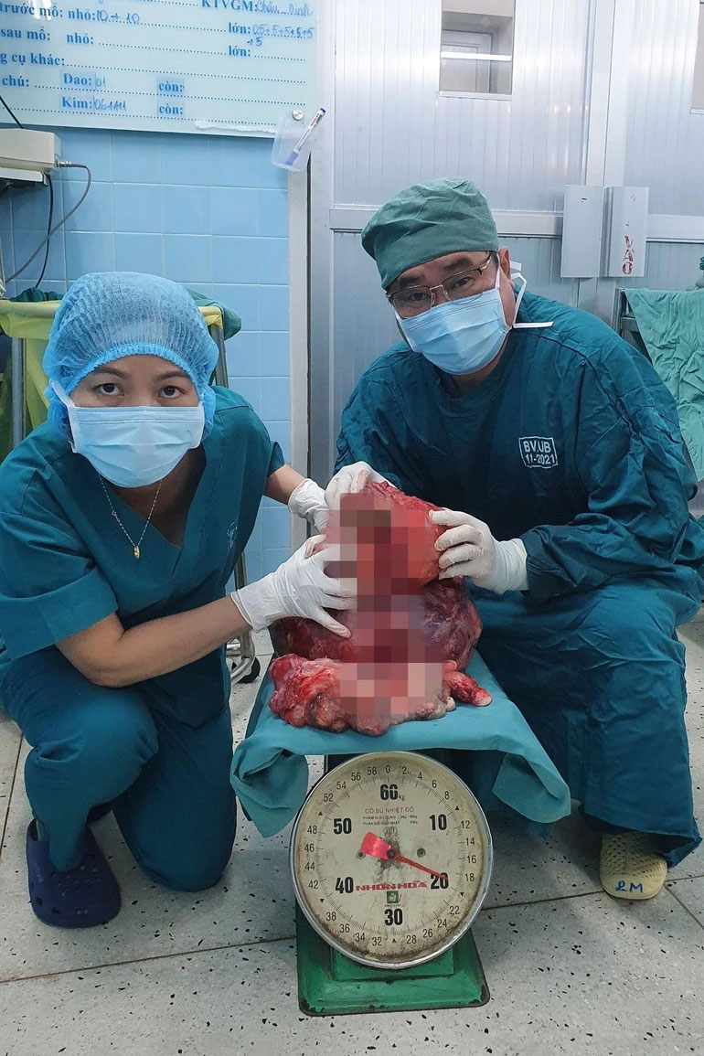 Trong quá trình phẫu thuật các bác sĩ đã tỉ mẩn bóc tách lột phúc mạc vùng chậu mang bướu, cắt khối bướu xâm lấn cân cơ thành bụng, đục bướu dính vào xương vách chậu, cắt đoạn ruột, cắt phần gan xâm lấn. Tổng trọng lượng khối bướu được bóc ra khỏi cơ thể người bệnh nặng tới 20kg. Đây là khối ung thư buồng trứng lớn nhất và phức tạp nhất được phẫu thuật thành công tại Bệnh viện Ung Bướu TPHCM từ trước đến nay.