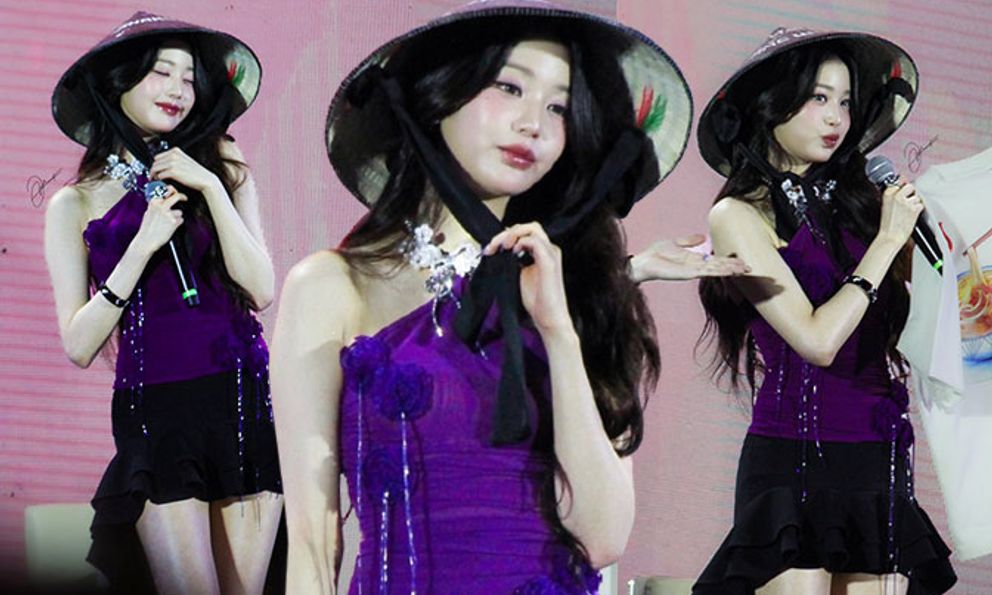 Xuất hiện tại sự kiện, Jang Won Young gây ấn tượng mạnh với vẻ ngoài xinh xắn như búp bê sống. Nhờ vóc dáng cực phẩm, mỹ nhân sinh năm 2004 dễ dàng "cân" được trang phục màu tí kén dáng. Cô tự tin, tỏa sáng trong từng góc độ, xứng danh là nữ idol xinh đẹp và nổi tiếng nhất nhì Kpop gen 4. Jang Won Young vui vẻ diện nón lá, khoe chiếc áo phông in hình món phở, khiến người hâm mộ Việt Nam không khỏi nức lòng.