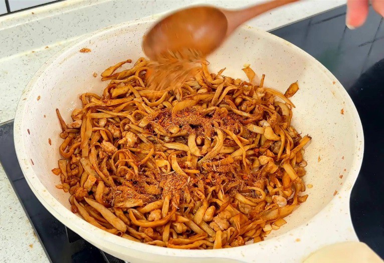 Bước 5: Thêm 1 thìa nước tương, 1 thìa dầu hào và 1 ít muối vào đảo đều tay.