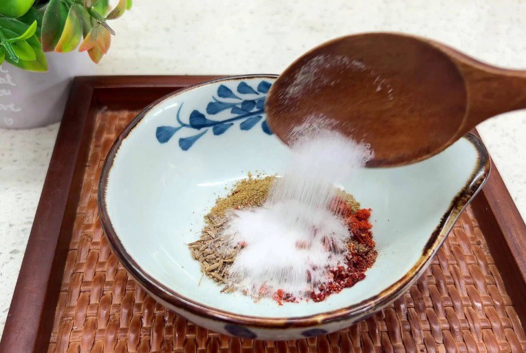 Bước 3: Cho 1 thìa bột thì là, 1 thìa hạt thì là, 1 thìa ớt bột, vừng trắng vào 1 bát nhỏ, khuấy đều rồi để sang bên.