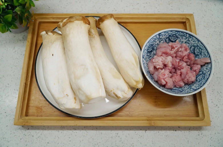 Nấm đùi gà, củ năng, thịt băm, tỏi, hành lá, bột thì là, hạt thì là, vừng, tiêu bột, ớt bột, xì dầu, dầu hào, muối.