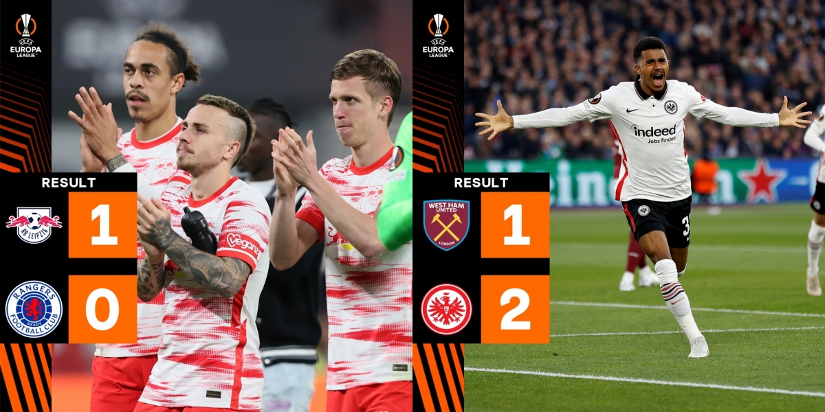 Tại Europa League, sau khi loại Barca, Frankfurt tiếp tục gây bất ngờ khi thắng 2-1 ngay trên sân West Ham ở lượt đi. Cặp còn lại, Leipzig cũng vượt qua Rangers với tỷ số 1-0.