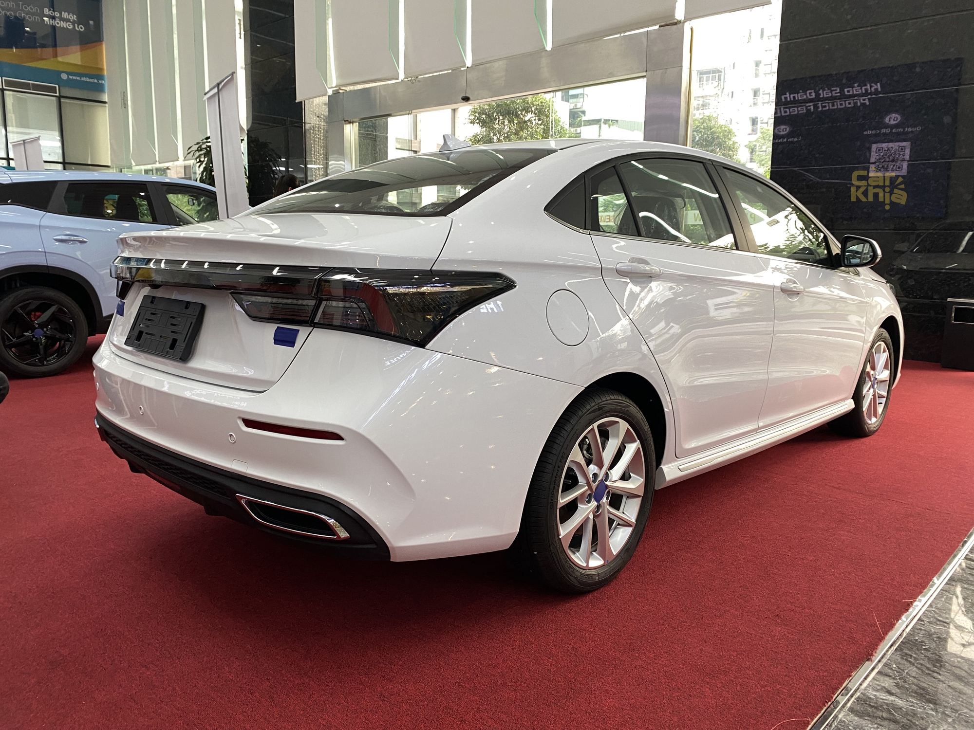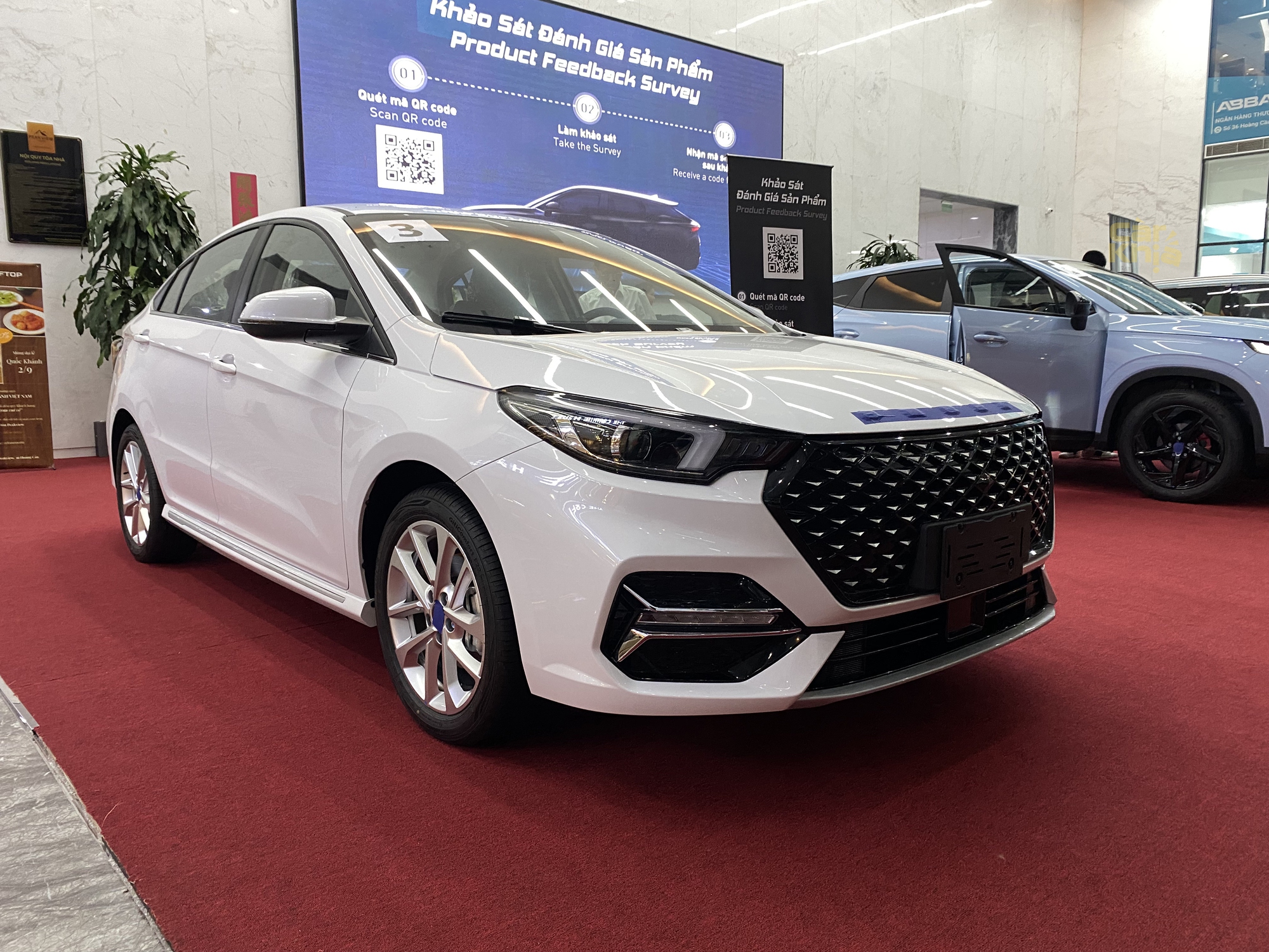 Omoda S5 chung phân khúc C với Mazda3 hay Hyundai Elantra, Kia K3. Dựa vào hình ảnh xe trưng bày, có thể nhận ra mẫu xe này được trang bị hệ thống chiếu sáng LED, đèn hậu LED, màn hình điện tử sau vô-lăng, màn hình trung tâm lớn, phanh đỗ điện tử, cần số điện tử...