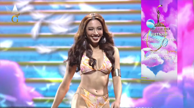Tại phần thi bikini, Nguyễn Thúc Thùy Tiên đã khiến người xem không thể rời mắt. Người đẹp tự tin khoe thân hình cân đối, làn da khỏe khoắn, ba vòng hoàn mĩ, sải bước đi đầy cuốn hút. Thần thái của Thùy Tiên cũng khiến khán giả phải rần rần vỗ tay.