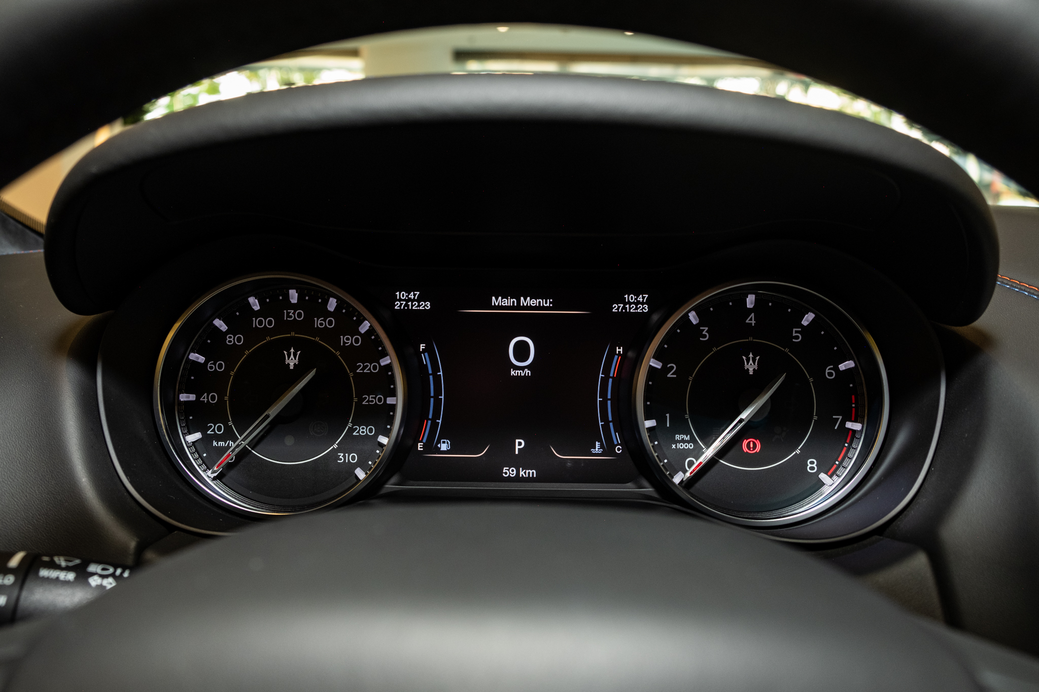 Đồng hồ kim nền xanh dương là thứ không thể thiếu trên các mẫu xe Maserati.