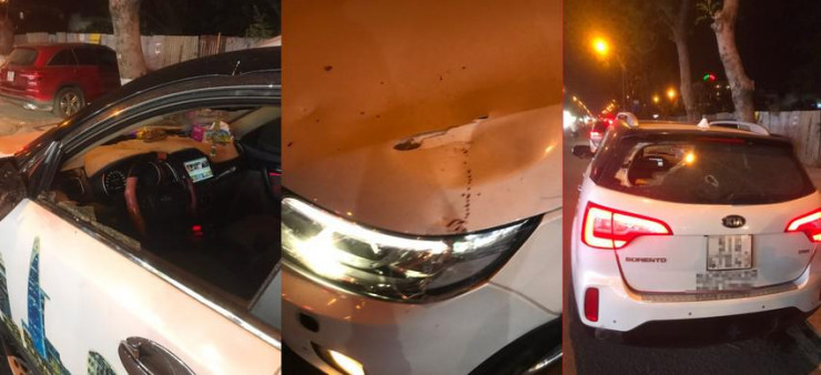 Hoảng sợ, khách chạy lên xe đóng cửa và anh T cố gắng điều khiển bỏ chạy. Tuy nhiên, nhóm người vẫn cầm hung khí đuổi theo, đập phá xe. “Họ kêu tôi mở cửa nhưng tôi thấy có người cầm hung khí nên không mở và họ đập phá” – anh T tiếp.