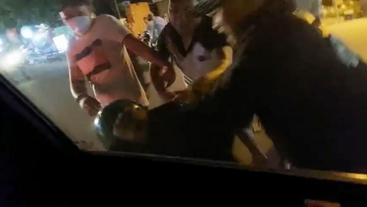 Một nhóm khoảng 4 người đàn ông lao tới, đánh đập một người đàn ông đứng gần xe ô tô màu trắng biển số 51G-470…Trong lúc đó, một số người trong ô tô quay lại clip.