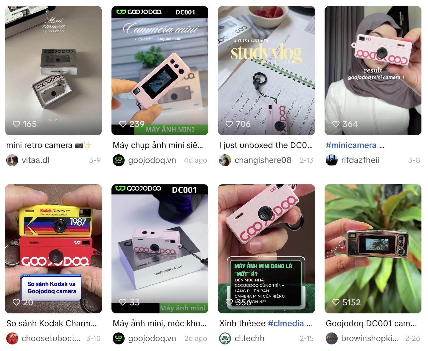 Lướt TikTok gần đây, không khó để bắt gặp những chiếc máy ảnh tí hon gắn lủng lẳng trên ba lô hoặc dây đeo cổ. "Thumb camera" - máy ảnh cỡ ngón tay cái - đang trở thành trend phụ kiện thời trang của Gen Z, và GOOJODOQ là một trong những cái tên nhảy vào phân khúc này với mức giá chỉ khoảng 300.000 đồng khi sale.