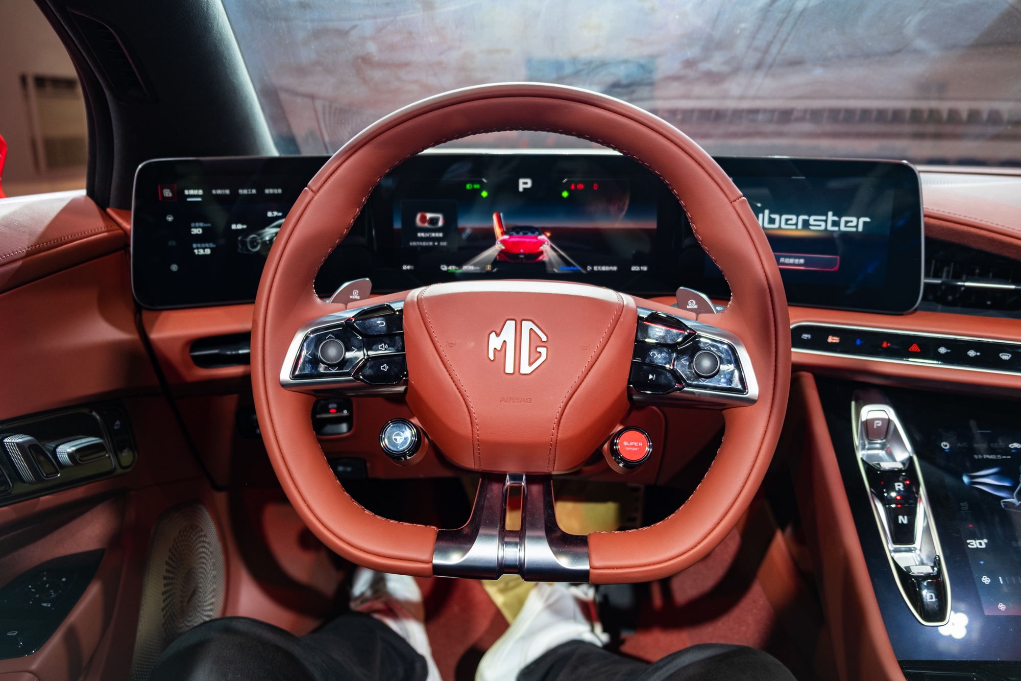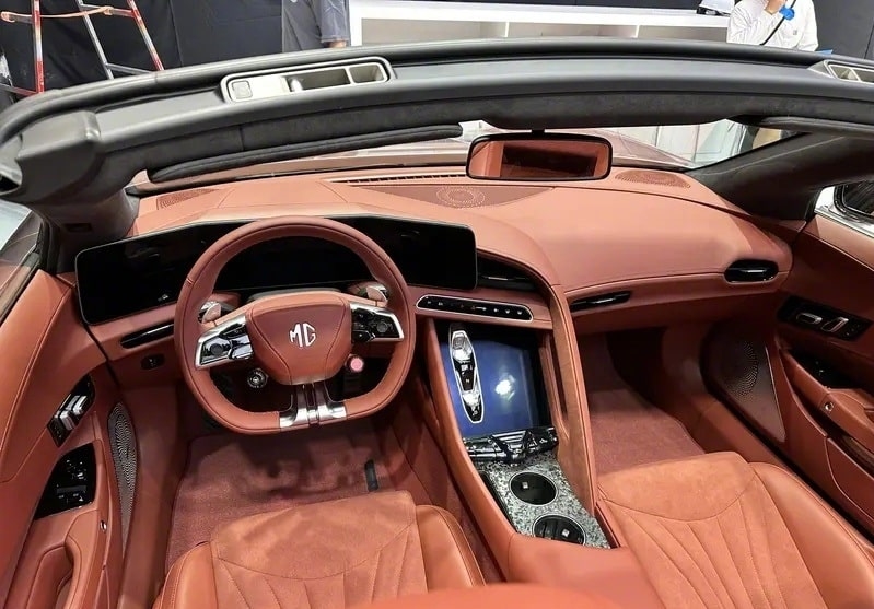 MG Cyberster không đi theo hướng thiết kế nội thất tối giản như Tesla khi ngoài màn hình cảm ứng, xe vẫn có một số nút bấm. Hai bên cửa mở đóng mở bằng nút bấm ngay trên cửa hoặc bên trong khoang cabin.