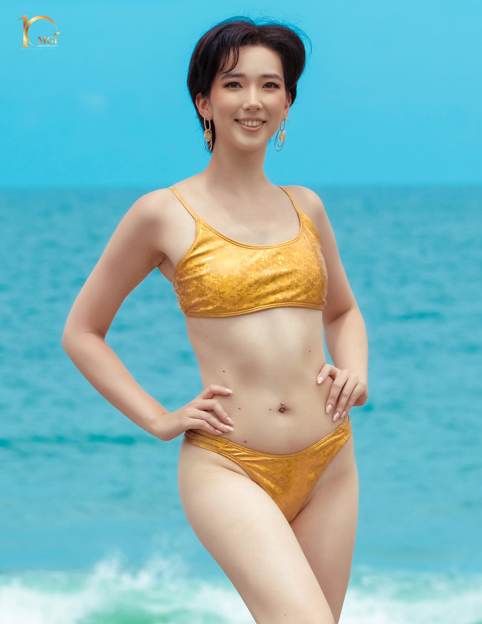 Mới đây, BTC đã 'xả kho' loạt ảnh nét căng của dàn thí sinh trong phần thi áo tắm nóng bỏng. Một lần nữa, các fan lại đổ dồn sự chú ý vào Thiên Ân. Đại diện Việt Nam được khen body săn chắc, thon gọn, tràn đầy sức sống trong bộ áo tắm cut out.