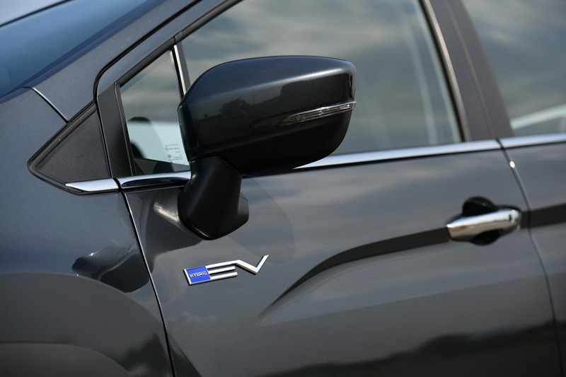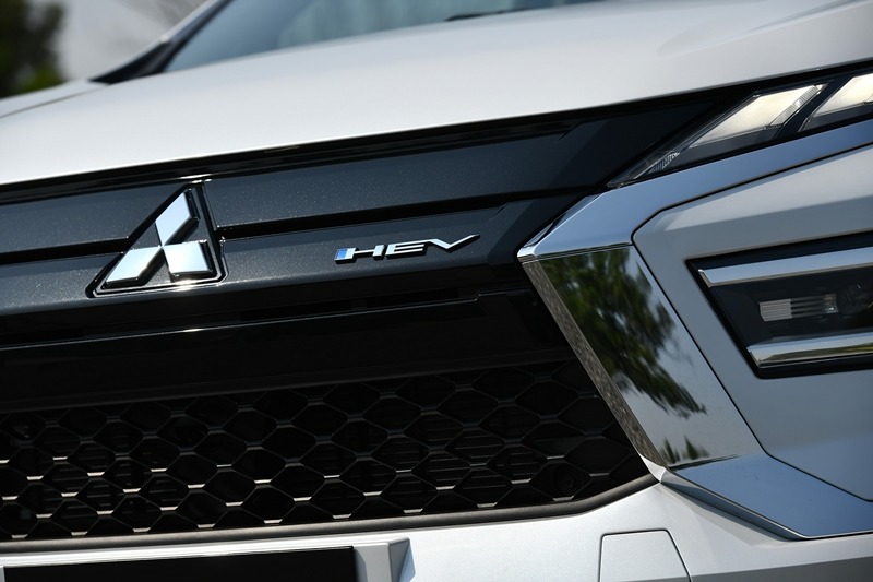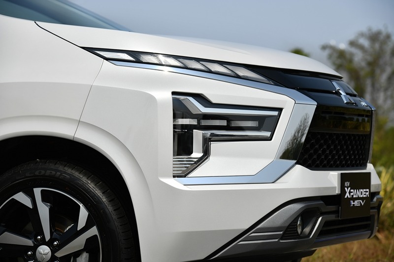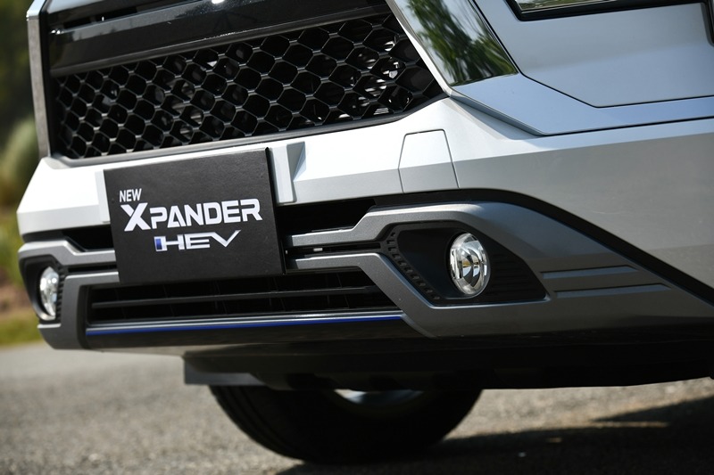 Mitsubishi Xpander HEV có thể nhận diện từ bên ngoài thông qua đường chỉ màu xanh dương trang trí ở cản trước, sườn, cản sau và bộ mâm. Logo HEV cũng được đặt ở lưới tản nhiệt phía trước, bên hông và phía sau.