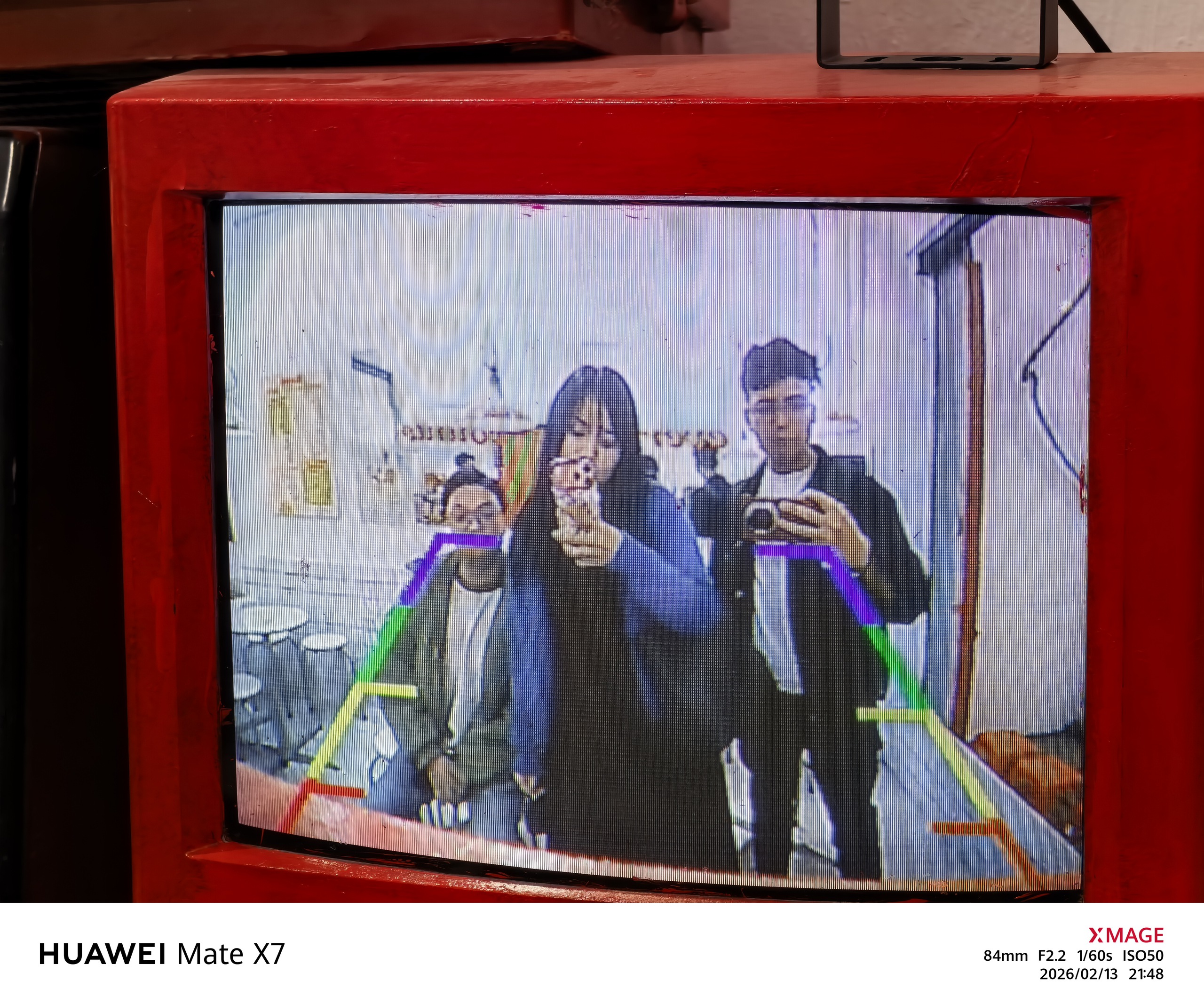 Ở trạng thái mở, Mate X7 sở hữu màn hình chính 8 inch với độ sáng tối đa 2500 nit. Màu sắc đậm, độ tương phản cao và đủ rực rỡ để sử dụng ngoài trời. Huawei áp dụng cấu trúc nhiều lớp, gồm lớp carbon giảm trọng lượng, lớp chất lỏng phi Newton tăng độ bền và kính UTG siêu mỏng nhằm cải thiện khả năng chống va đập. Nếp gấp ở giữa màn hình tồn tại nhưng không quá rõ trong điều kiện nhìn thông thường.