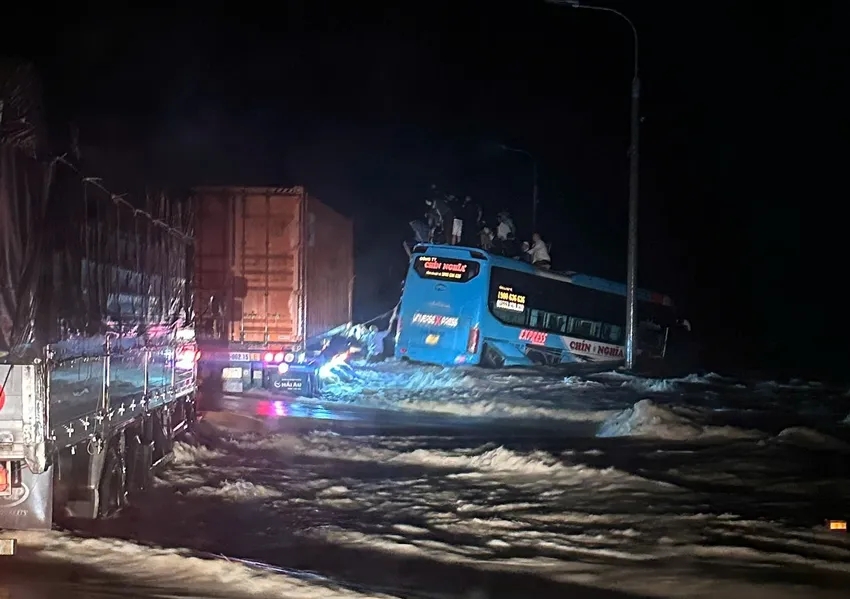 Theo đó, 0 giờ 35 ngày 20-11, xe khách biển số Quảng Ngãi của nhà xe Chín Nghĩa đang lưu thông trên quốc lộ 1 theo hướng Nam - Bắc, trên xe có 33 người.