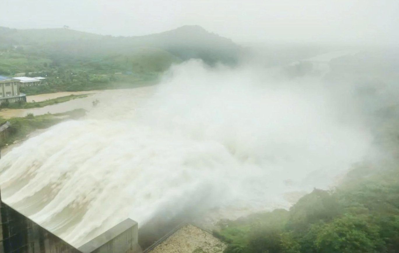 Hồ Sông Cái lớn nhất tỉnh Khánh Hoà tiếp tục tăng mức xả lên hơn 2.000 m³/s, nâng mức cảnh báo ngập lụt vùng hạ lưu. Ảnh: Dân Việt