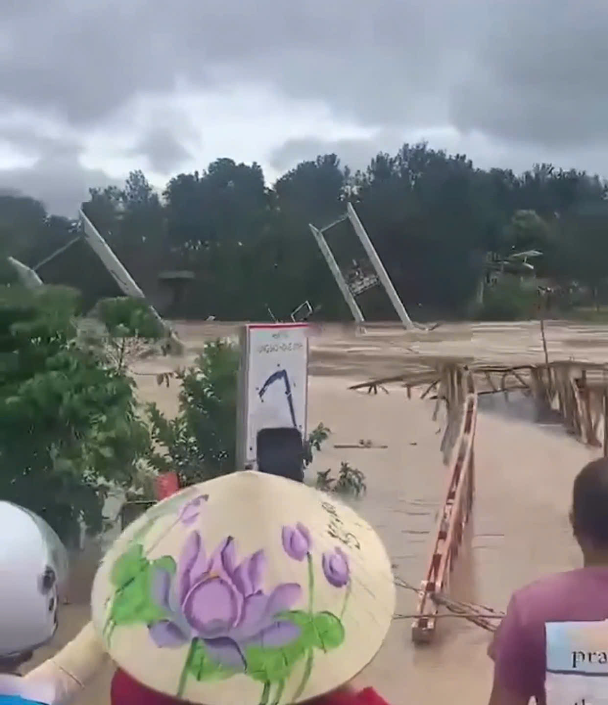Trưa 20/11, một clip của người dân ghi lại khoảnh khắc cầu treo Thiện Chí, xã Ninh Gia (tỉnh Lâm Đồng) bị nước lũ cuốn trôi khiến nhiều người chứng kiến hoảng hốt.