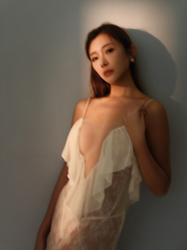 Thần thái gợi cảm trong trang phục voan - ren mỏng manh