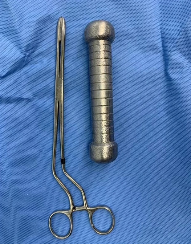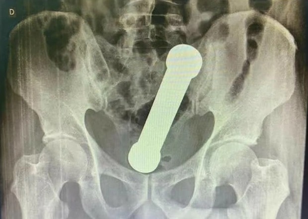 Đến khi cầm tấm phim chụp trên tay, các bác sĩ đã không khỏi hốt hoảng khi phát hiện một dị vật hình trụ dài 20cm trong cơ thể người bệnh giống như một quả tạ. Lúc này nạn nhân mới cho biết trước đó anh đã cố gắng tự mình lấy "vật thể" ra khỏi cơ thể nhưng không thành công, tuy nhiên người này không cho biết nguyên nhân trước đó có sự xuất hiện của món đồ này.