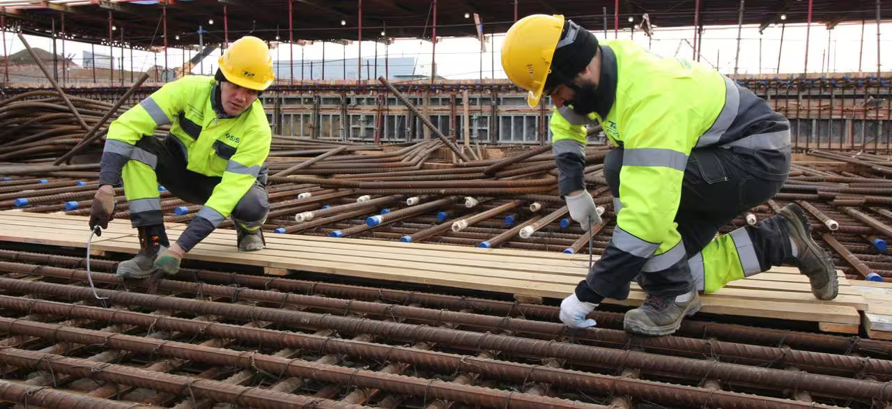 Các công nhân nhà máy điện hạt nhân đang gia cố móng, đào các đường hầm đặc biệt cho cáp và đường ống, và lắp đặt các bộ phận ngầm cho thiết bị. Tổng cộng các công việc này cần 5.000 tấn cốt thép và hơn 20.000 m³ bê tông. Khu vực thi công rộng hơn một sân bóng đá.