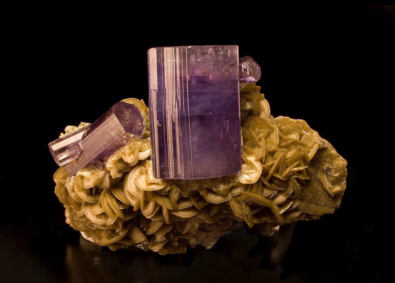 Apatit [Công thức hóa học Ca₅(PO₄)₃(F,Cl,OH)] là một khoáng chất quan trọng trong việc hình thành xương và răng ở các sinh vật sống, và cũng được sử dụng làm nguồn cung cấp phốt pho cho phân bón. Apatit thường có nhiều màu sắc, bao gồm xanh lá cây, vàng, xanh dương và không màu. Ảnh: Geologyscience