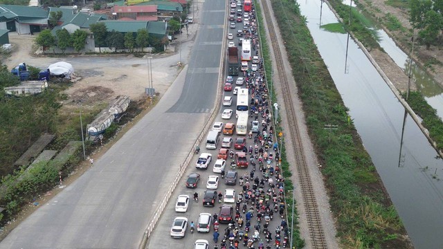 Ghi nhận tại cửa ngõ Hà Nội, trên đường Ngọc Hồi hướng về nội thành đã xảy ra ùn tắc, hàng dài phương tiện xếp hàng