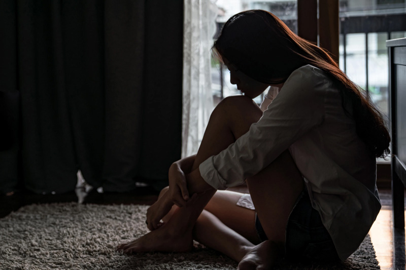 Khoảng 10/2021, H. càng chán nản, hay khóc lóc và tự bi quan, có ý tưởng muốn chết. Bệnh nhân giải tỏa căng thẳng bằng cách dùng mảnh thủy tinh cứa vào cổ tay, chảy máu. Sau khi làm đau bản thân, em thấy dễ chịu. Vào viện tháng 3/2022, H. được đưa đến một bệnh viện và điều trị bằng thuốc chống trầm cảm.