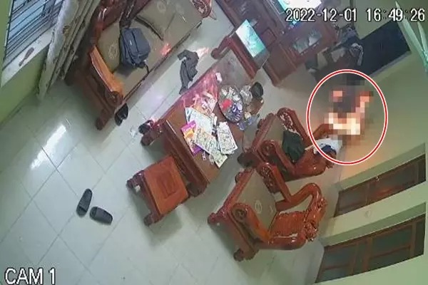 Đoạn clip trích xuất từ camera gia đình cho thấy, sự việc xảy ra vào khoảng 16h50 ngày 1/12. Lúc này, bé trai ngồi chơi một mình ở phòng khách.