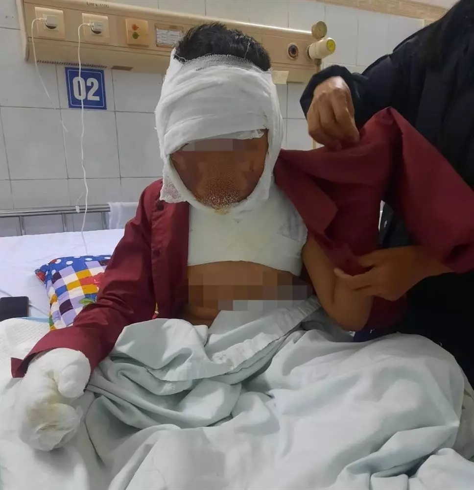 Cụ thể, anh Đ.N.T cho biết bé trai bị bỏng hết cổ, má, tay phải và toàn bộ 2 chân. Chẩn đoán bé trai bỏng khoảng 30%, cấp độ 3, khả năng cao phải ghép da trong thời gian tới. Hiện, bé trai đã tỉnh, có thể ngồi dậy trên giường.