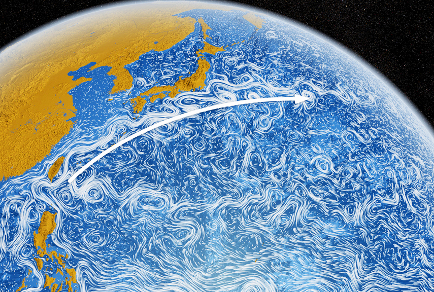 Đó là dấu vết của một trong những dòng hải lưu bề mặt (có tên Kuroshio) đang thay đổi vị trí, một sự kiện đã gây ra những hậu quả nghiêm trọng. Dòng hải lưu Kuroshio, hay còn gọi là “Dòng hải lưu đen”, là một trong những dòng hải lưu ấm lớn nhất trên thế giới.