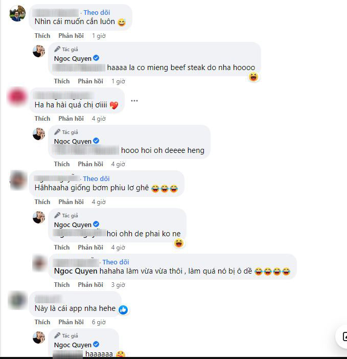 Tuy nhiên, theo dõi màn trò chuyện của Ngọc Quyên với bạn bè ngay dưới bài đăng thì mới phát hiện, gương mặt khác lạ gây sốc này chỉ là sản phẩm của một phần mềm chỉnh ảnh mà thôi. Nhan sắc của Ngọc Quyên hiện tại vẫn xinh đẹp và không có gì thay đổi, bằng chứng là trong livestream mới nhất, nữ siêu mẫu vẫn xuất hiện vui vẻ với ngoại hình hoàn toàn bình thường.