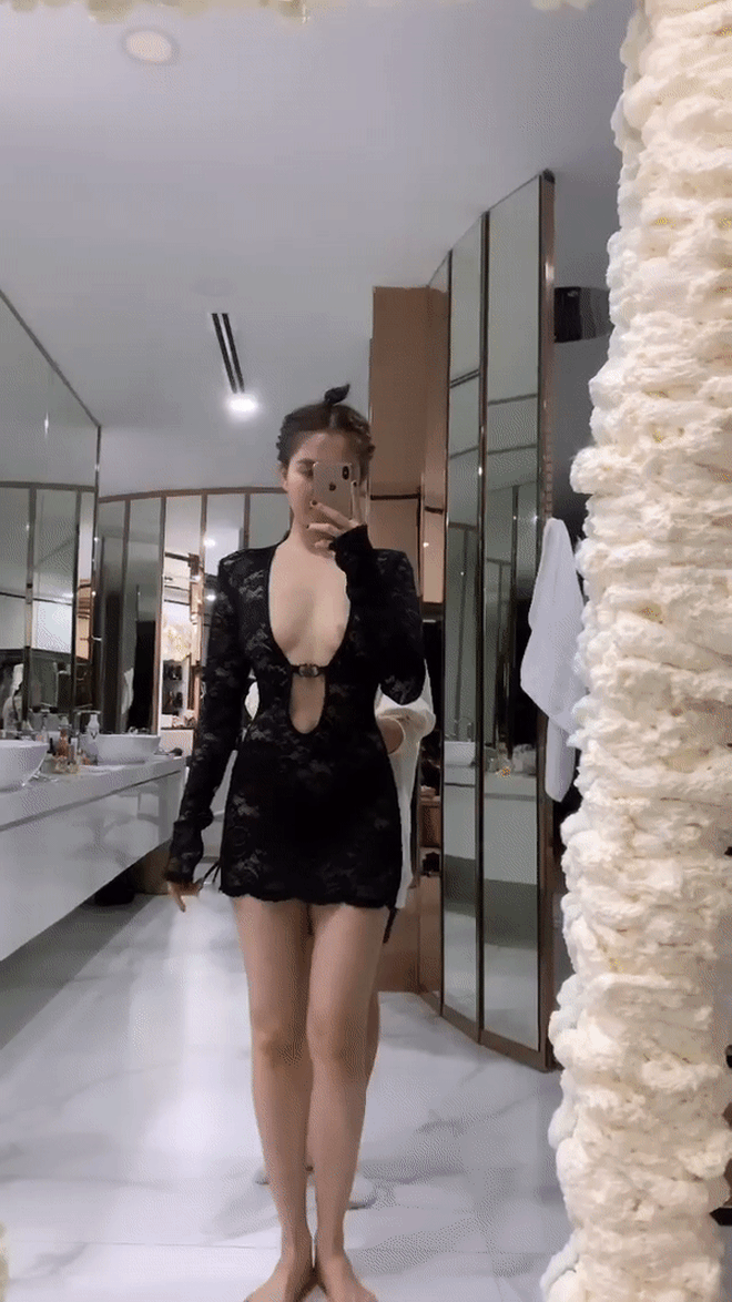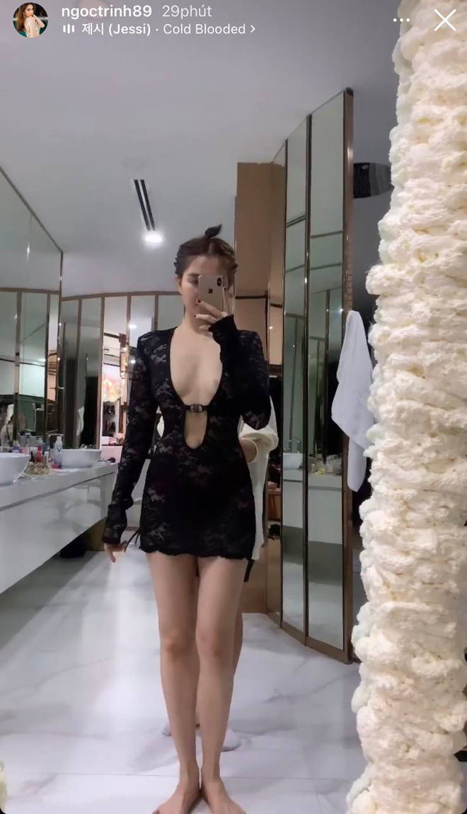 Mới đây, Ngọc Trinh vừa đăng tải đoạn clip khoe dáng cực nuột lên trang cá nhân, thu hút sự chú ý của đông đảo cư dân mạng. Theo đó, chân dài sinh năm 1989 diện bộ cánh màu đen được cắt xẻ táo bạo ở phần thân trên, giúp cô nàng khoe vòng 1 căng tràn cực thu hút. Điều đáng nói, thiết kế hiểm hóc của bộ cánh này lại khiến Ngọc Trinh đôi lúc như là lộ cả phần nhạy cảm của vòng 1 ra.