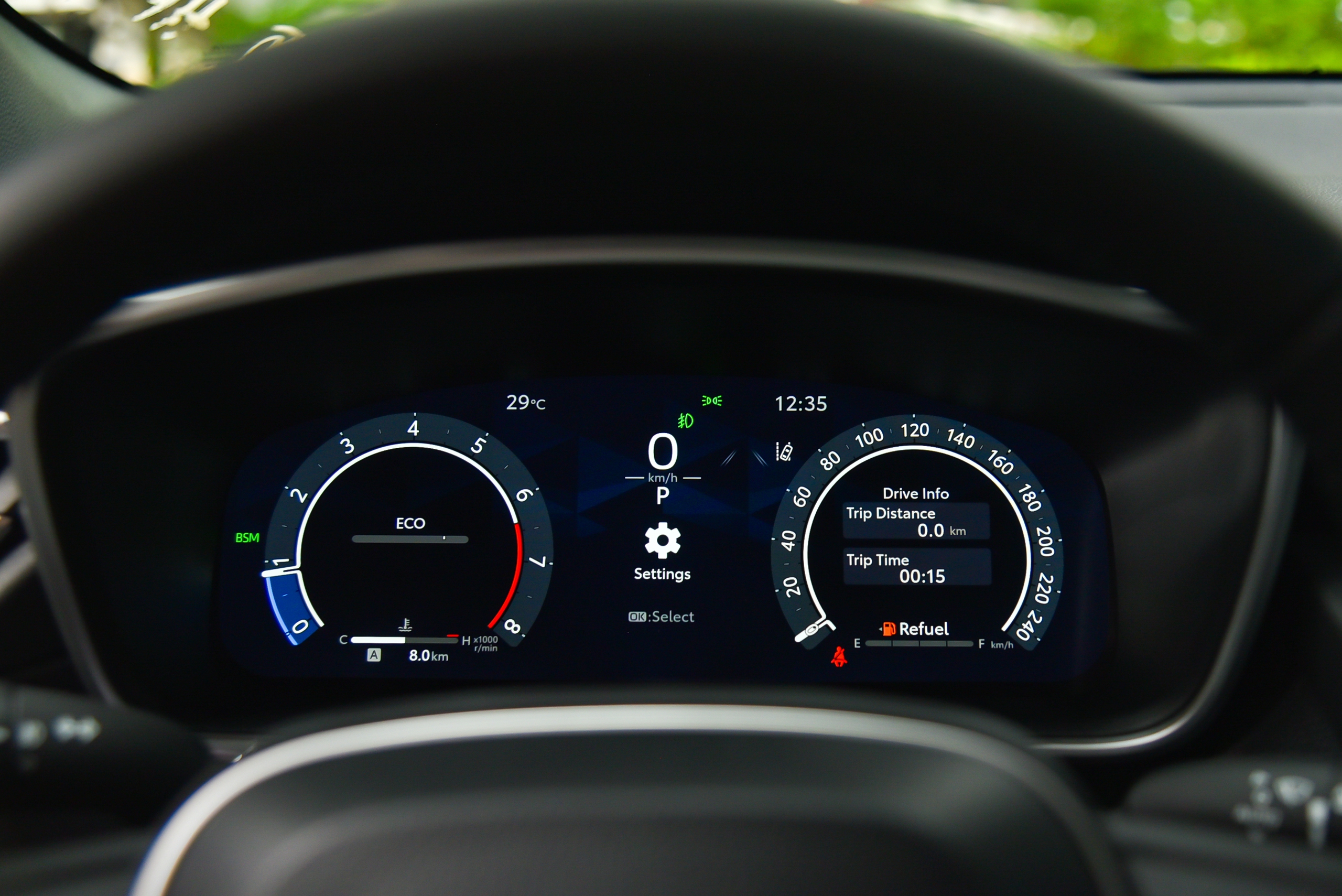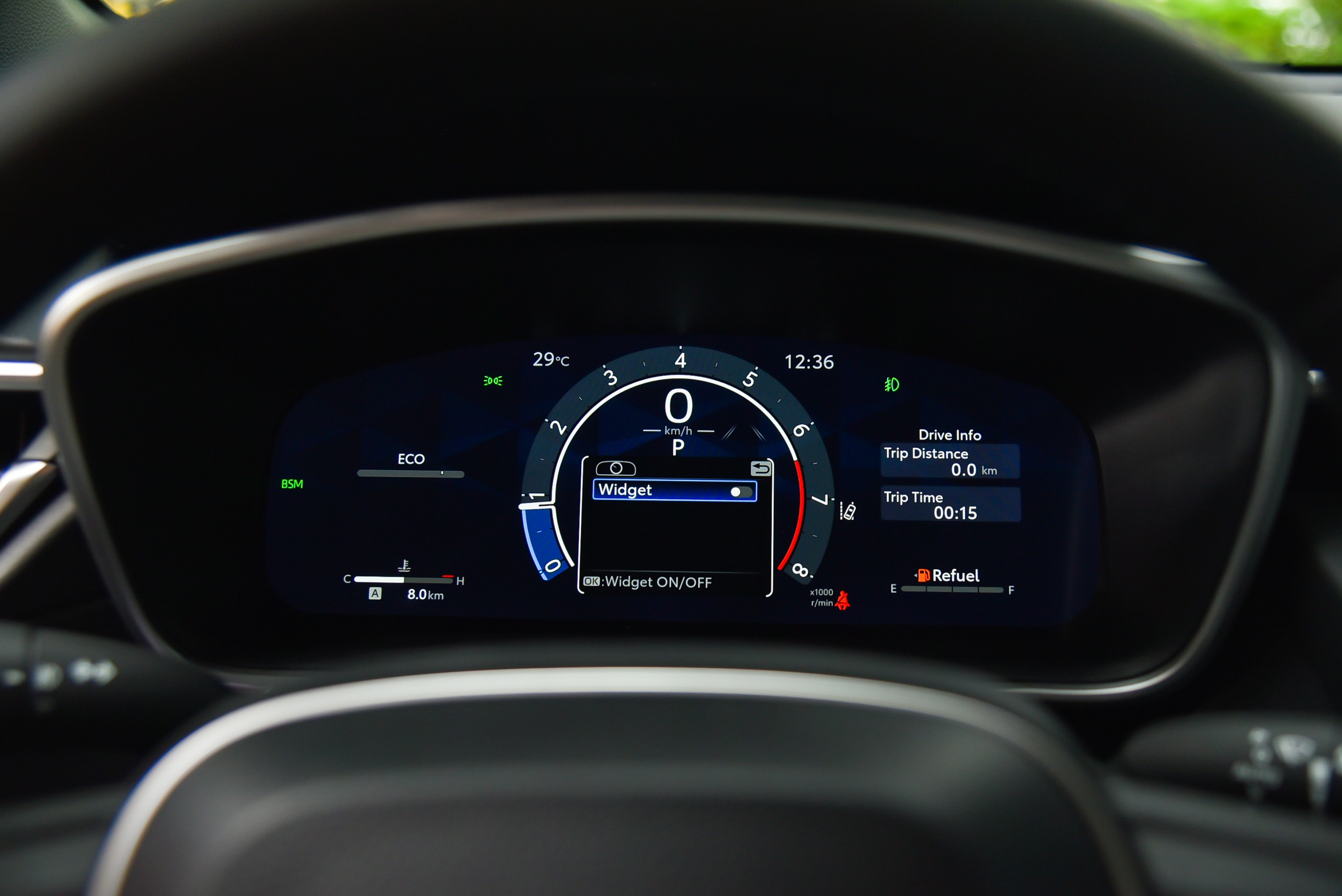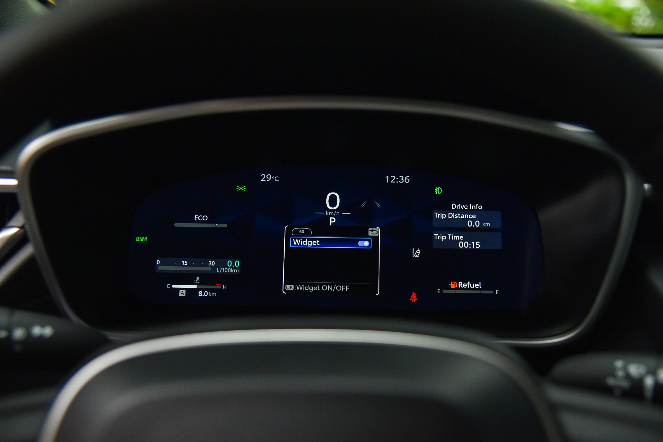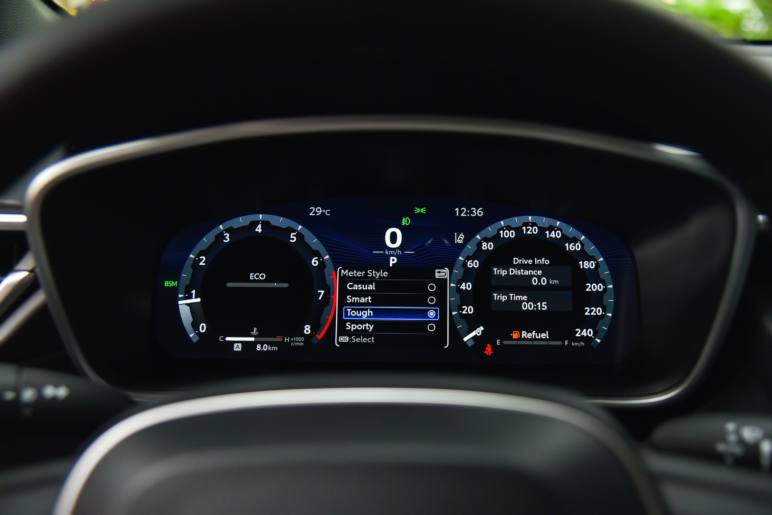 Điểm mới đầu tiên của cabin xe là đồng hồ tốc độ cơ học ở bản xăng cũ nay đã chuyển thành điện tử toàn phần, với màn hình 12,3 inch có độ nét cao và hiệu ứng chuyển động mượt mà. Toyota mang tới cho người dùng 3 kiểu giao diện khác nhau để khách hàng lựa chọn.