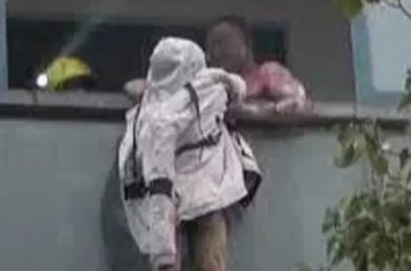 Trước đó, Chen và vợ, họ Wang, bị bỏng nặng trong một đám cháy chung cư ở thành phố Nam Kinh, tỉnh Giang Tô (Trung Quốc). Để tránh sức nóng của đám cháy và khí độc, vợ chồng Chen dìu nhau ra ban công tòa nhà.