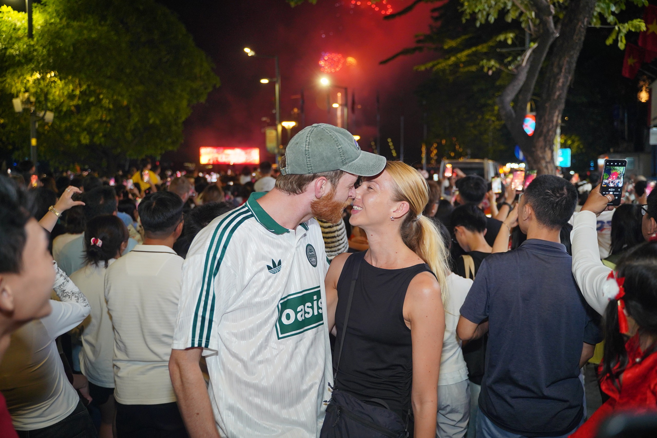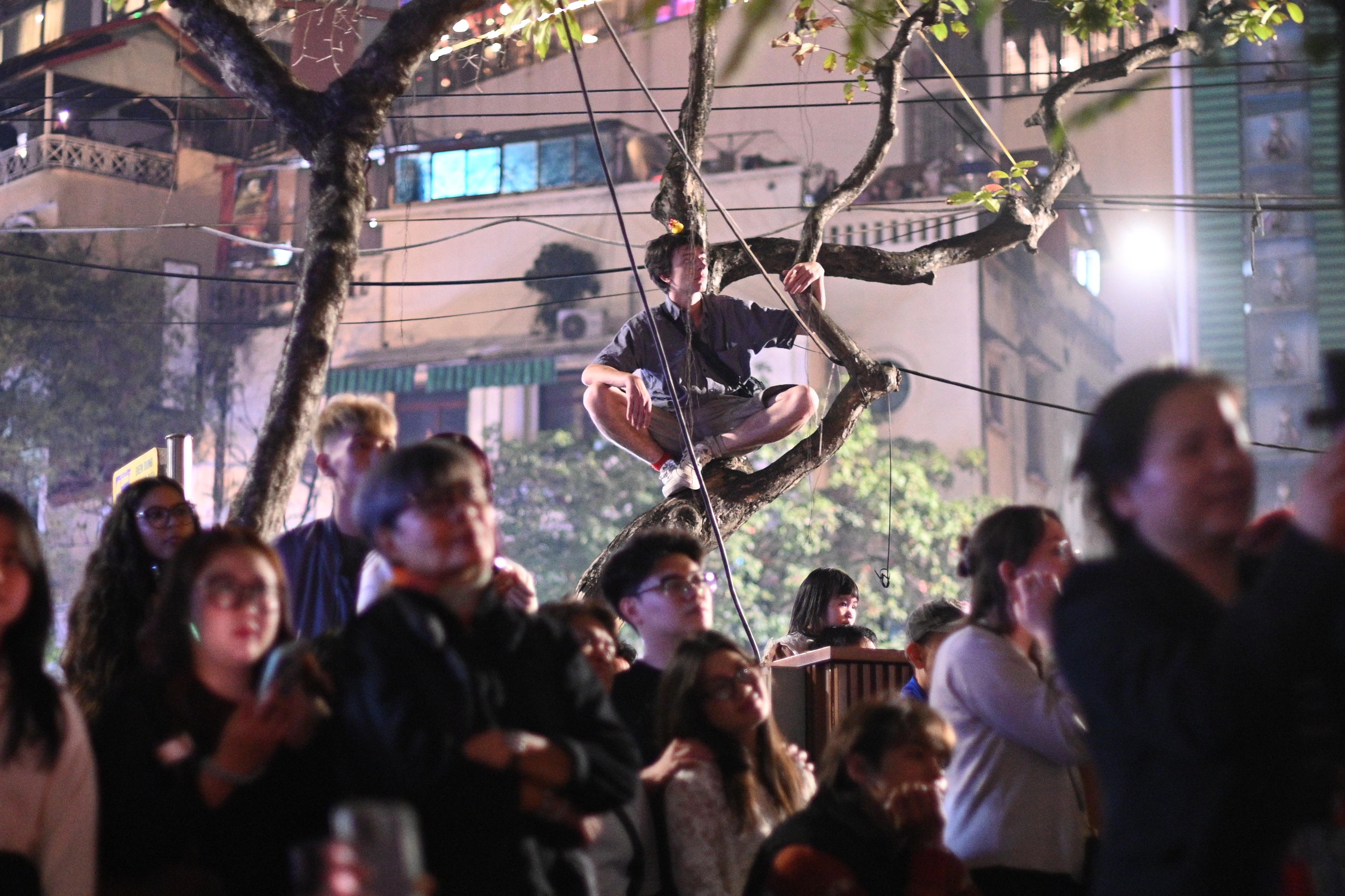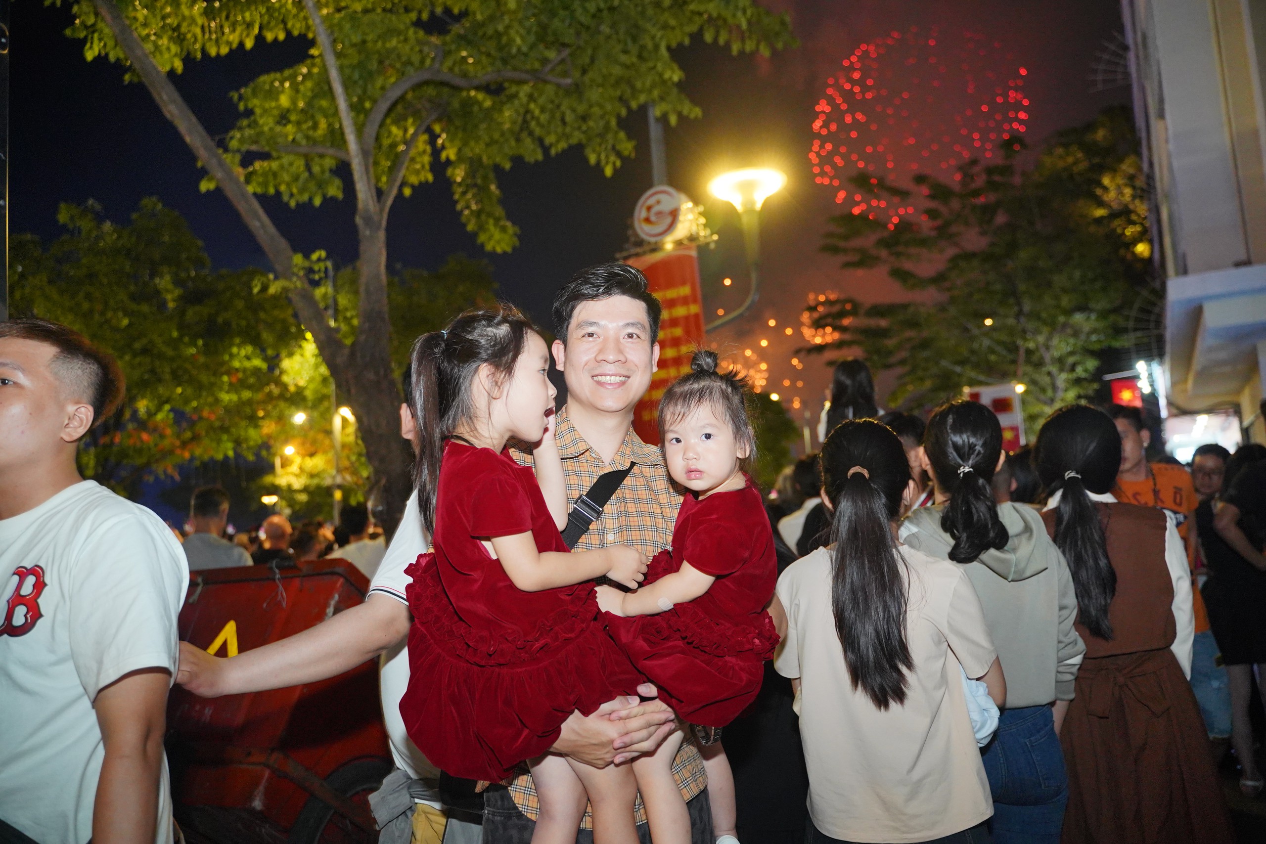 Ngay từ đầu giờ tối, nhiều khu vực trung tâm đã chật kín người dân và du khách. Các gia đình tranh thủ lưu lại những bức ảnh kỷ niệm, háo hức đếm ngược chờ khoảnh khắc pháo hoa rực sáng trên bầu trời Thủ đô.