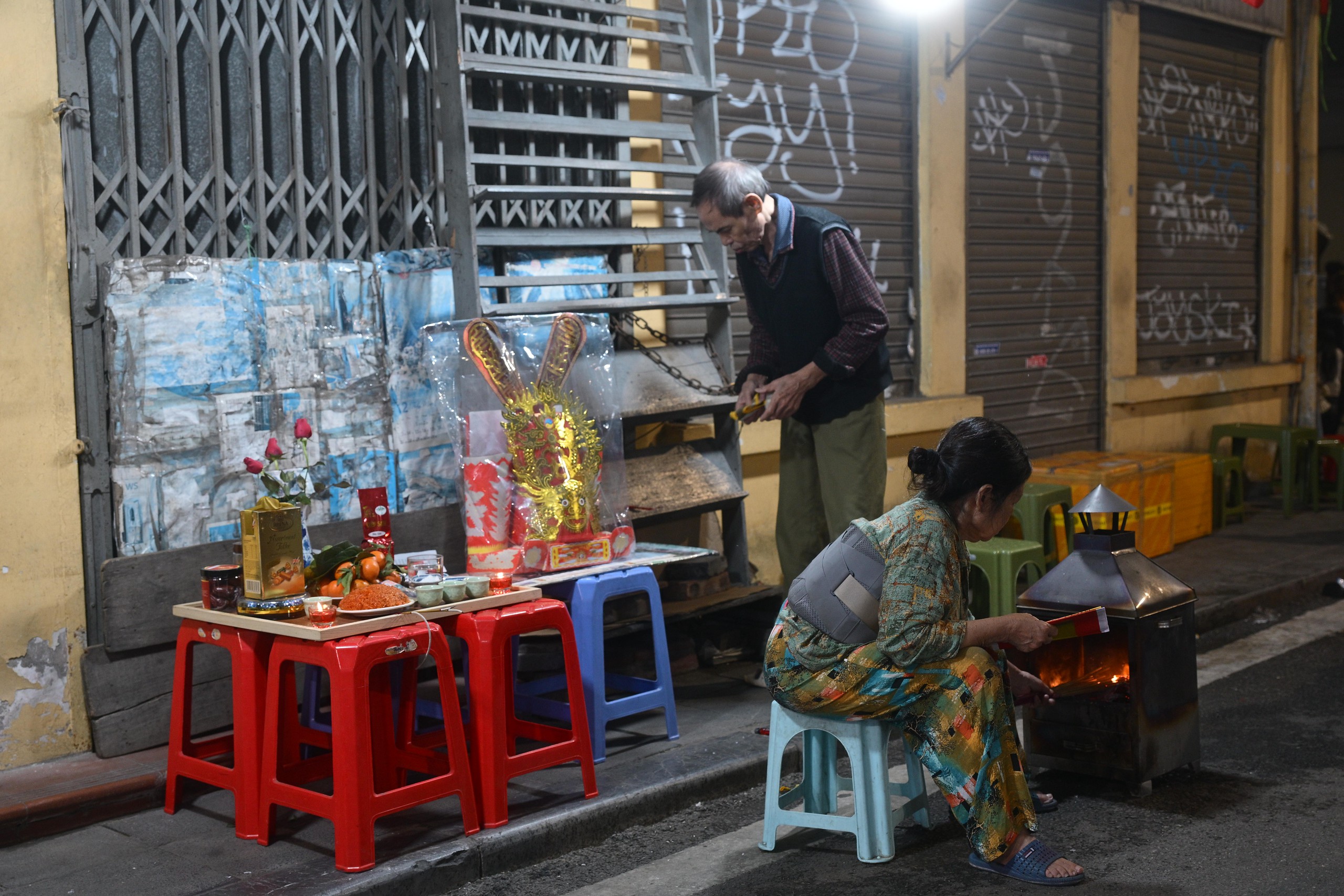 Nhiều gia đình tiếp tục thắp hương, hóa vàng, gửi trọn ước nguyện đầu năm mới. Khói hương bảng lảng giữa đêm xuân, hòa cùng dư âm pháo hoa còn vương trên bầu trời, tạo nên khung cảnh ấm cúng