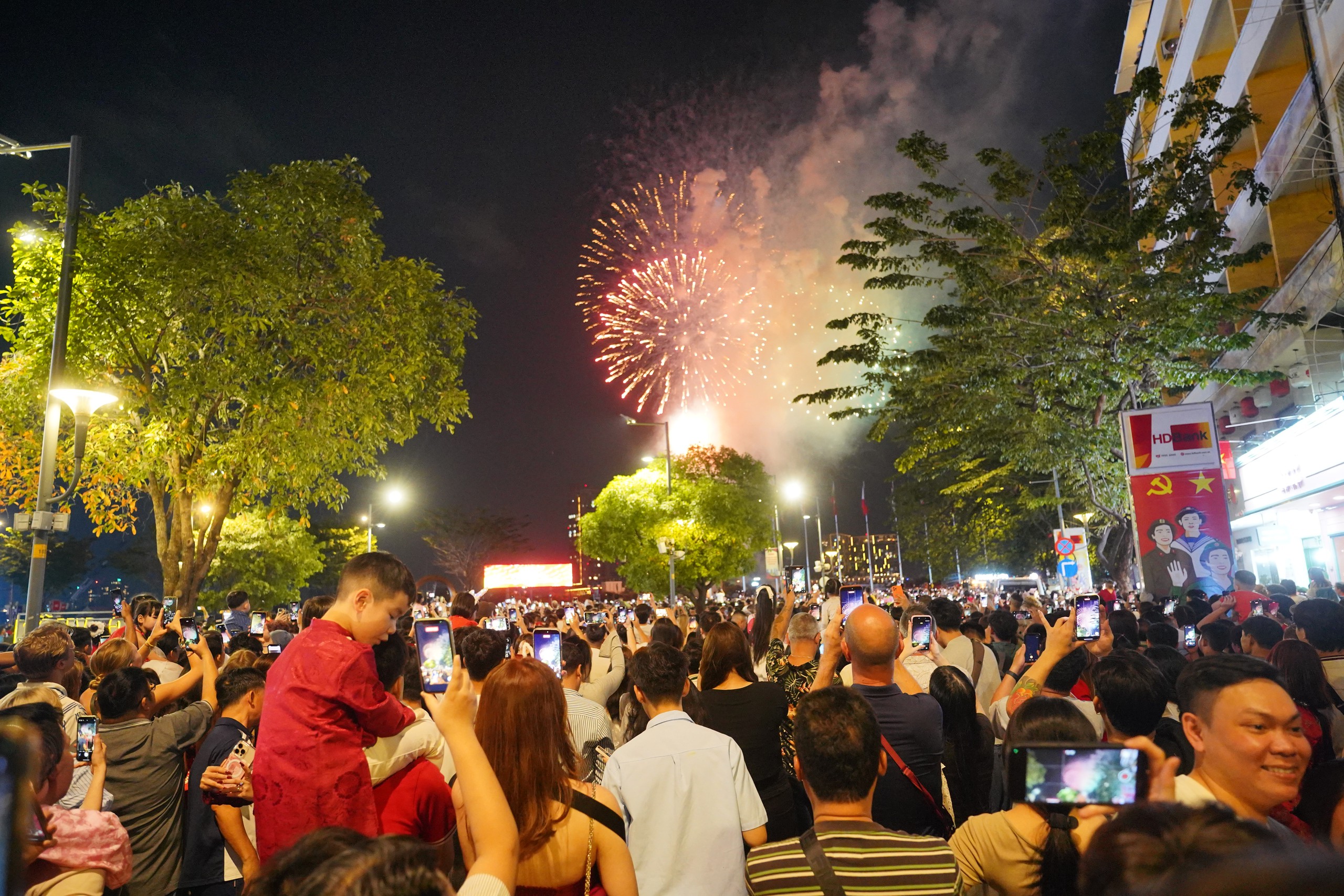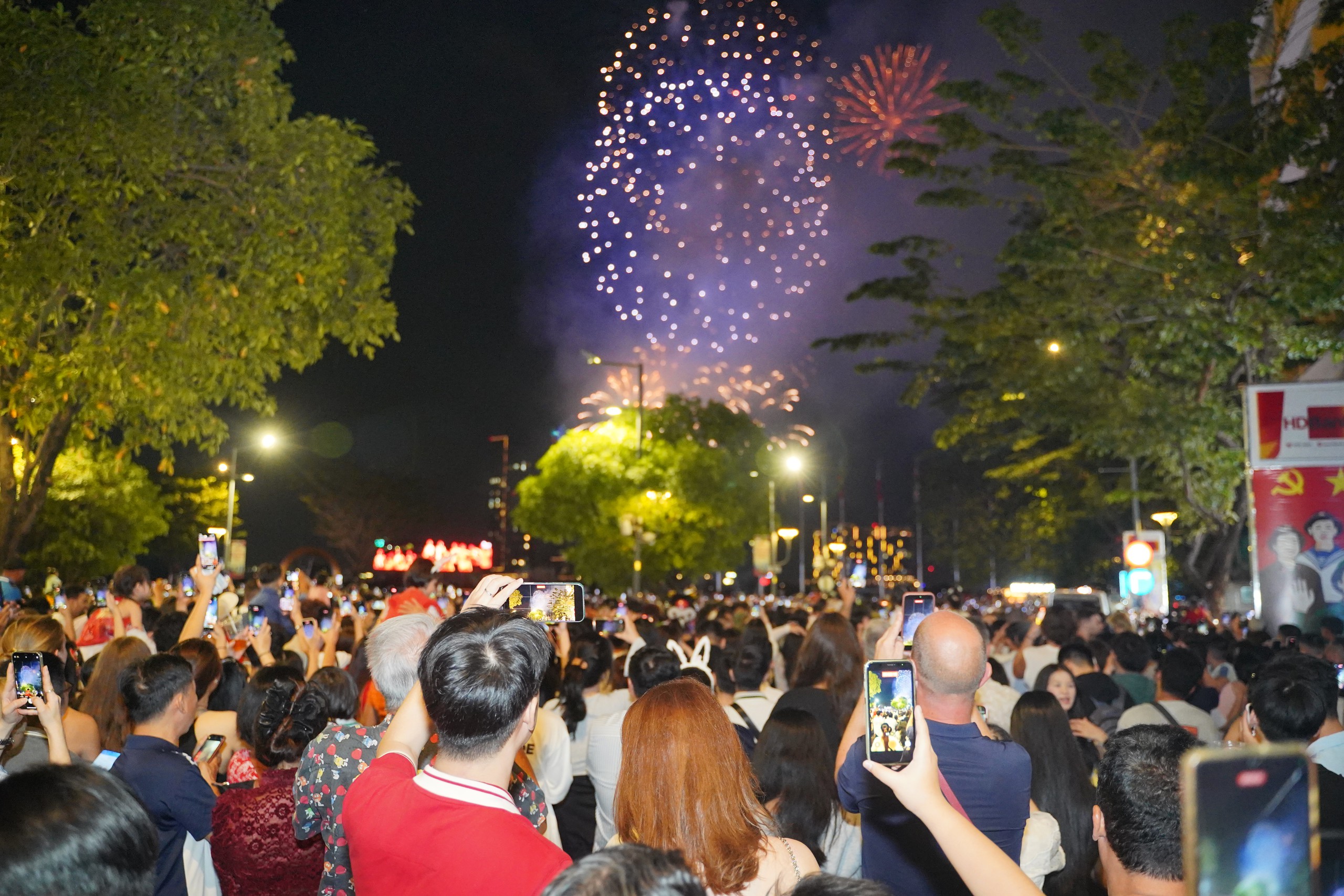 Người dân thích thú ghi lại những khoảnh khắc pháo hoa rực sáng trên bầu trời