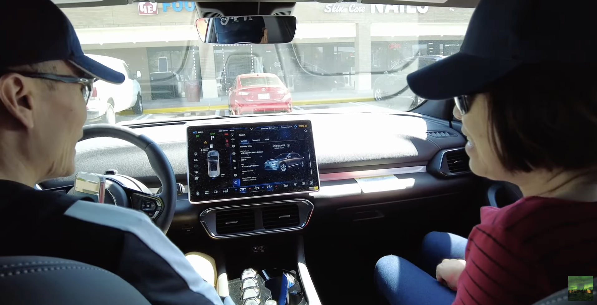 Sau một thời gian sử dụng, chị cảm thấy hài lòng với trải nghiệm trên chiếc VinFast VF 8. Ảnh cắt từ video Anh Áo Rách