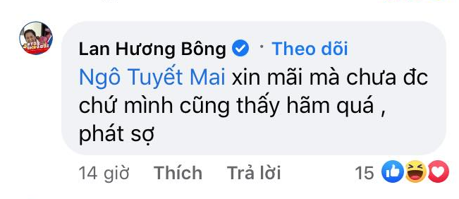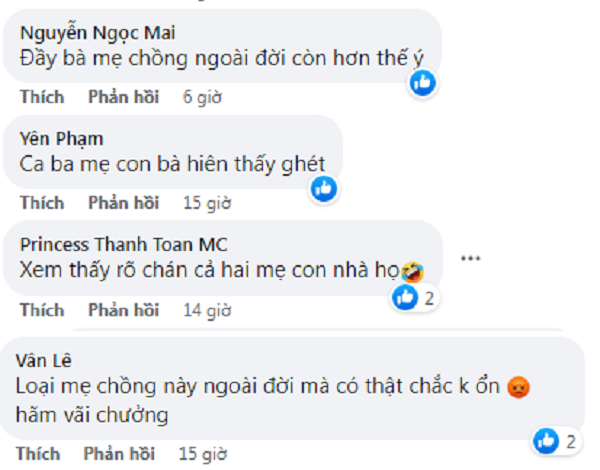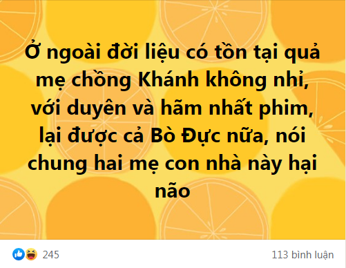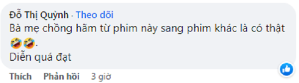Trước phản ứng của khán giả, mới đây NSND Lan Hương cũng để lại bình luận đồng cảm với những bức xúc của người xem. Cụ thể, một khán giả bình luận: 'Cô đóng 1 bộ nữa vai mẹ chồng như thế này, kiểu gì cũng đạt danh hiệu mẹ chồng ác nhất màn ảnh mọi thời đại đó ạ'. NSND Lan Hương trả lời: 'Công nhận ! Mình còn đang hãi chết đi đây!'