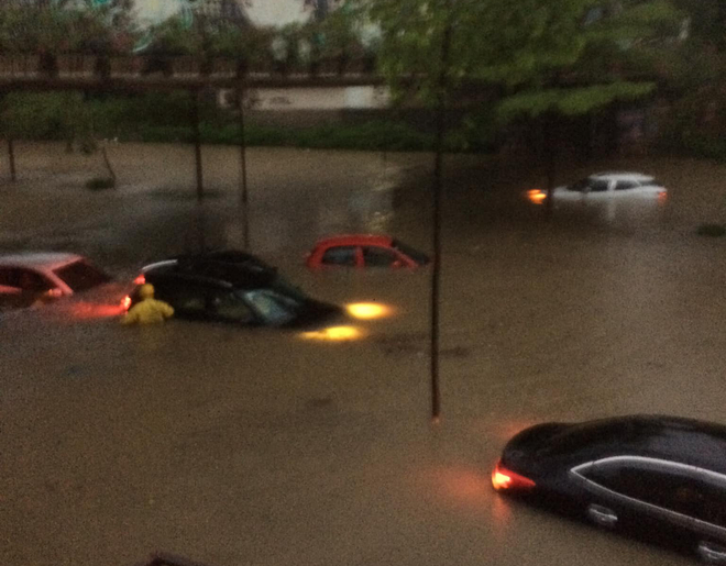 Một người dân sống gần khu vực bị ngập cho biết, sau khi làm ca đêm, khoảng 5h sáng đi làm về qua đoạn cầu chui Phú Sơn thì thấy khoảng 10 xe ôtô chìm trong nước. Nhiều xe nháy đèn liên tục, không thoát ra được khu vực ngập.