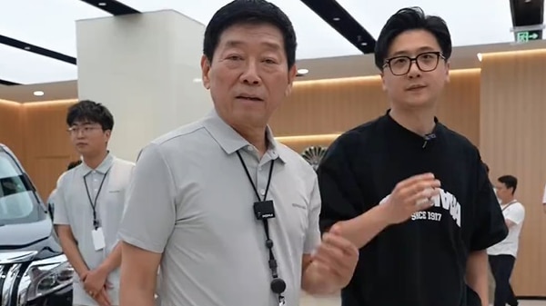 Tỷ phú Wei Jianjun diễn vai nhân viên bán hàng cho Great Wall Motor cực đạt khi có màn giới thiệu xe "nổ" tưng bừng sau khi khẳng định khả năng hạn chế tiếng ồn từ lốp của mẫu xe trong ảnh (GWM Tank 700 Hi4-T) tốt hơn cả Rolls-Royce Cullinan. Ảnh: CarNewsChina