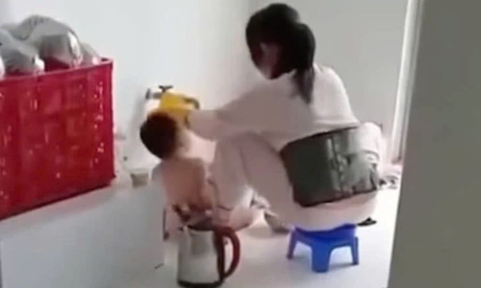 Trước đó, trên mạng xã hội lan truyền đoạn clip ghi lại cảnh người phụ nữ đang "nhồi" đồ ăn cho một đứa bé khoảng 2 tuổi, không mặc áo. Bé ngồi trên sàn nhà, còn người bảo mẫu nắm đầu bé ngửa cổ ra sau, liên tục đổ thức ăn giống cháo vào miệng, mặc cho bé khóc la khóc.
