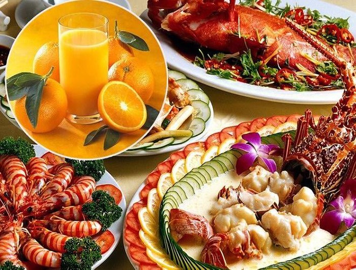 Nếu ăn những loại động vật sống dưới nước có vỏ: hải sản, ốc… thì không nên uống vitamin C hay ăn hoa quả có nhiều vitamin C: cà chua, cà rốt, chanh, ới, cam, quýt, mướp đắng…