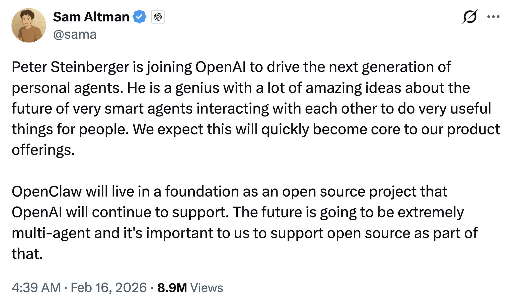 Theo chia sẻ của chính Steinberger, lựa chọn gia nhập OpenAI không xuất phát từ mục tiêu xây dựng một công ty tỷ USD mới mà để đưa ý tưởng về AI agent đến với nhiều người dùng hơn trong thời gian ngắn nhất. OpenClaw sẽ không bị đóng lại mà được chuyển sang mô hình quỹ độc lập và tiếp tục tồn tại như một dự án mã nguồn mở.