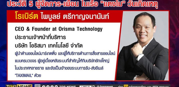 Theo đó, 1 nhân vật đã đứng ra thừa nhận hành động khiến Tangmo Nida (nữ diễn viên Chiếc Lá Bay) rơi khỏi thuyền và tử nạn. Nhân vật này chính là Robert Paiboon Trikanjananan.