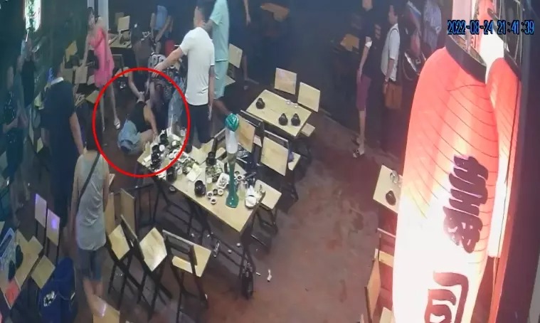 Đến tối 24/8, tiếp tục xuất hiện nhóm người đến quán ăn nhậu rồi chửi bới, dùng chai bia ném vào người và túm tóc quật ngã chị D. xuống nền nhà...