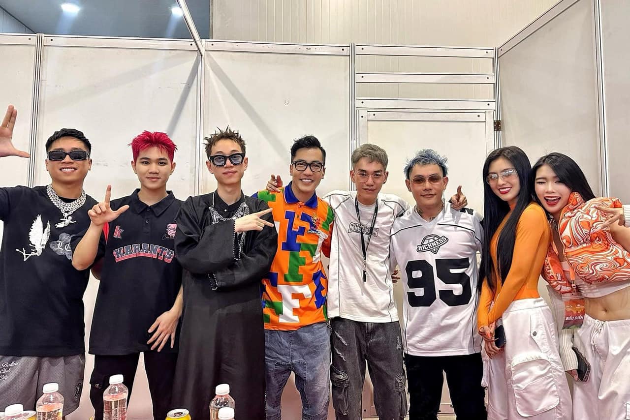Tammy (áo cam) chụp hình cùng các rapper của Rap Việt mùa 3