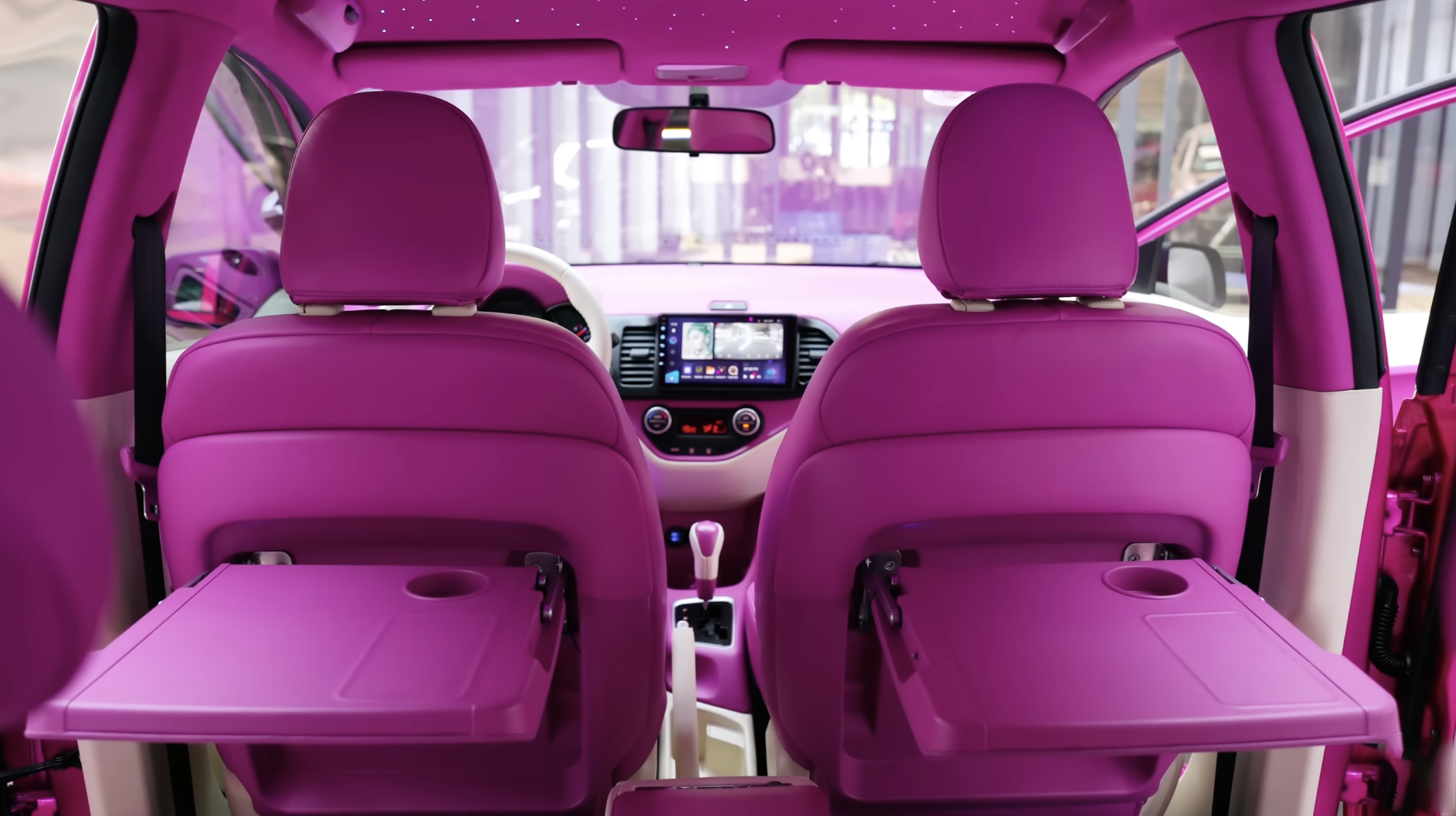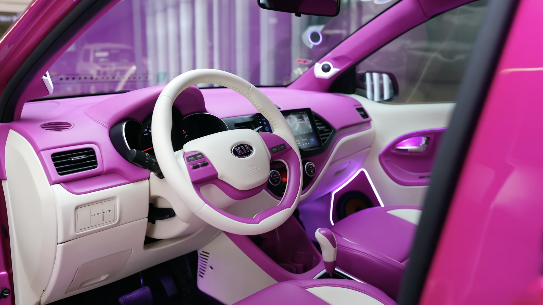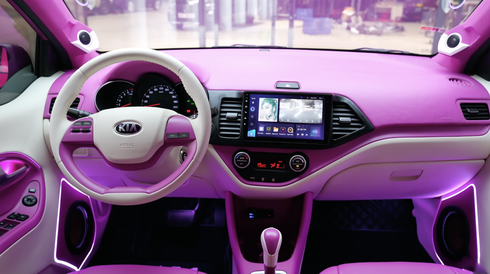 Nếu như bên ngoài chỉ can thiệp đến diện mạo, thì phần nội thất của chiếc Morning được thay đổi đến tận kết cấu. Toàn bộ phần khung bên trong đều sơn lại sao cho đồng màu ngoại thất. Các chi tiết ốp nhựa bọc da lại toàn bộ.