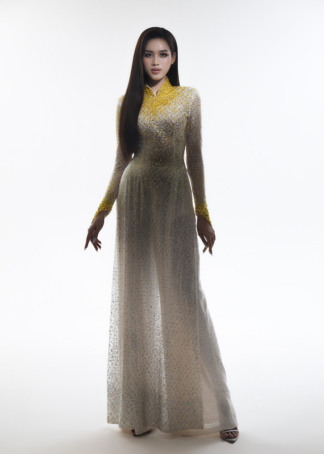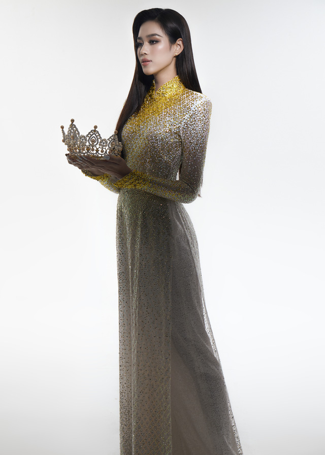 Bên cạnh thiết kế cut-out quyến rũ, Đỗ Hà cũng hé lộ trang phục cô trao lại chiếc vương miện của mình. Nàng hậu chọn tà áo dài truyền thống, biểu tượng cho vẻ đẹp của người con gái Việt Nam.