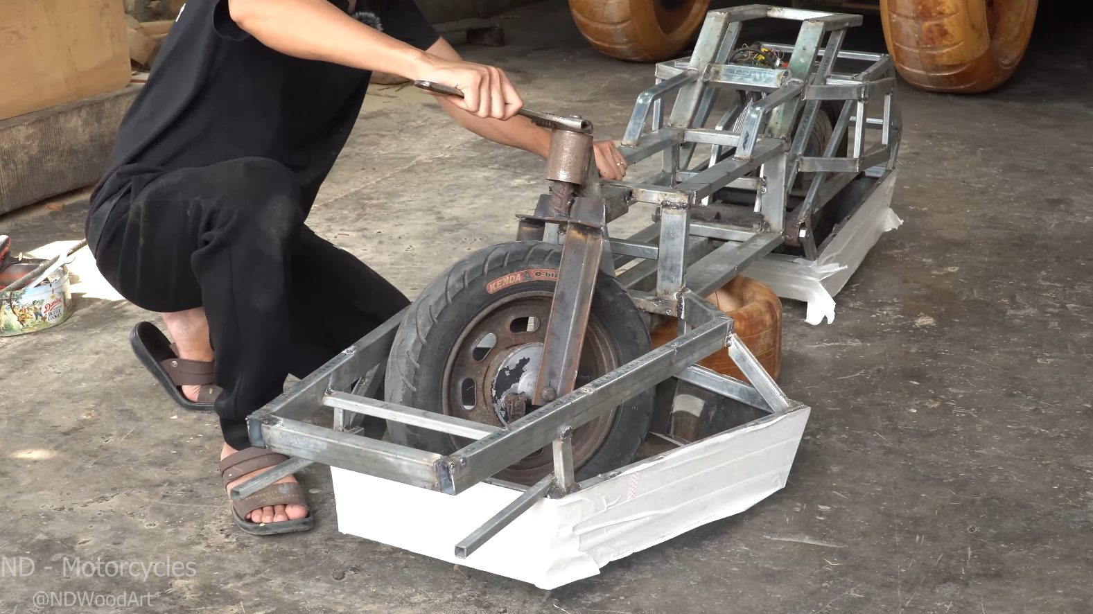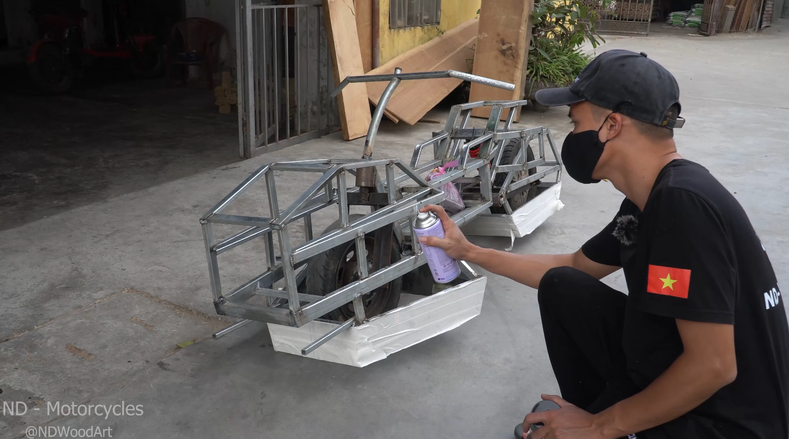 Phần khung của chiếc mô tô bay này được anh Đạo thiết kế và gắn lại toàn bộ. Trong khi những chiếc mô-tô gỗ trước đó đều sử dụng lại một phần khung và bộ phận của xe đạp điện hay mô-tô đã qua sử dụng.