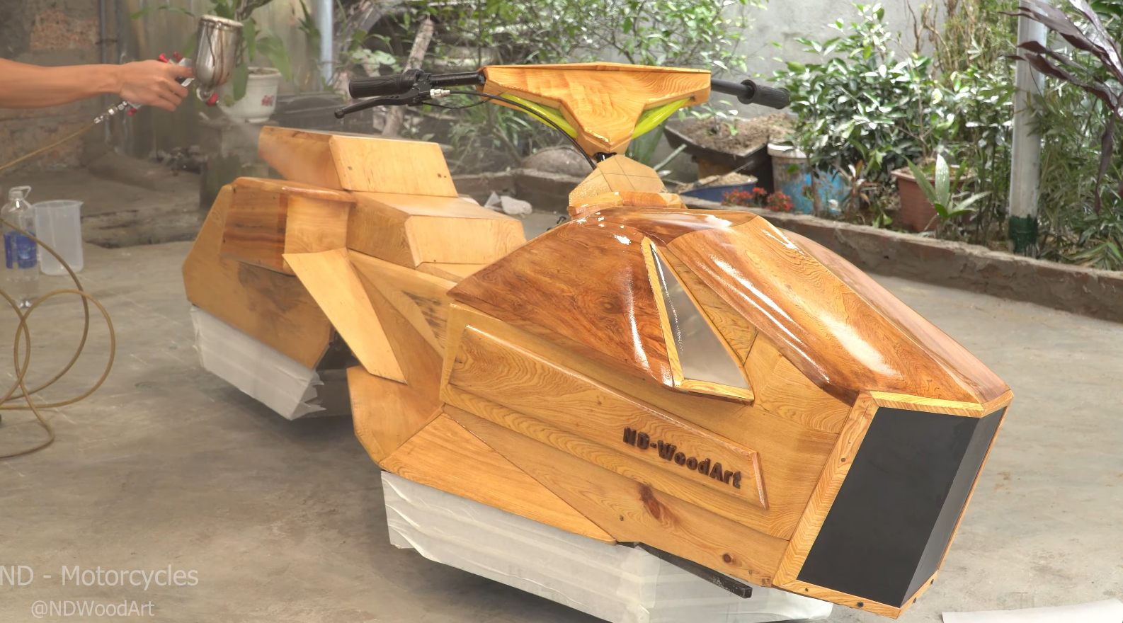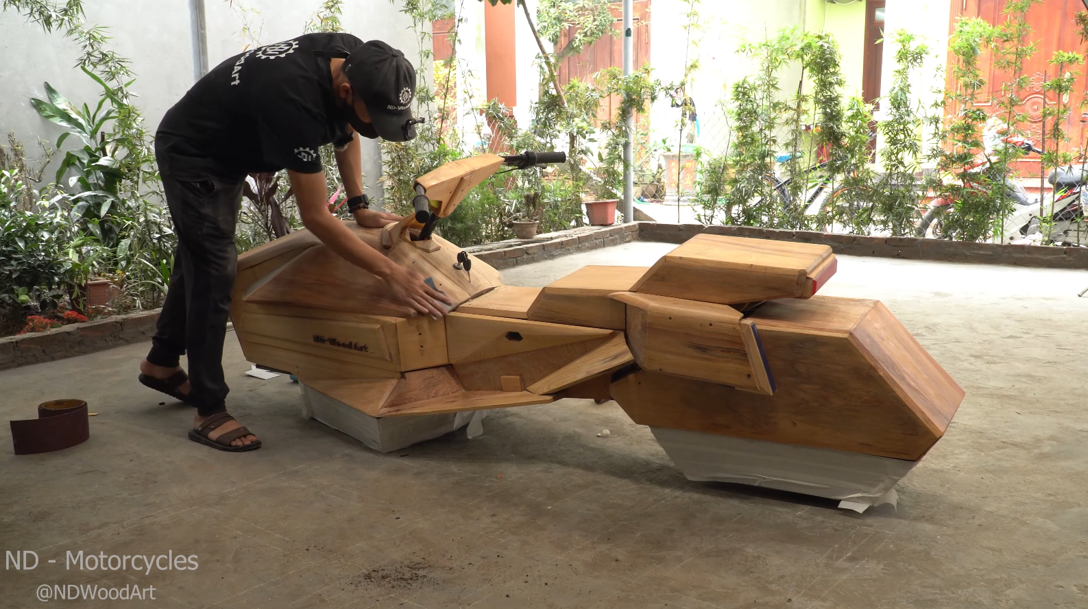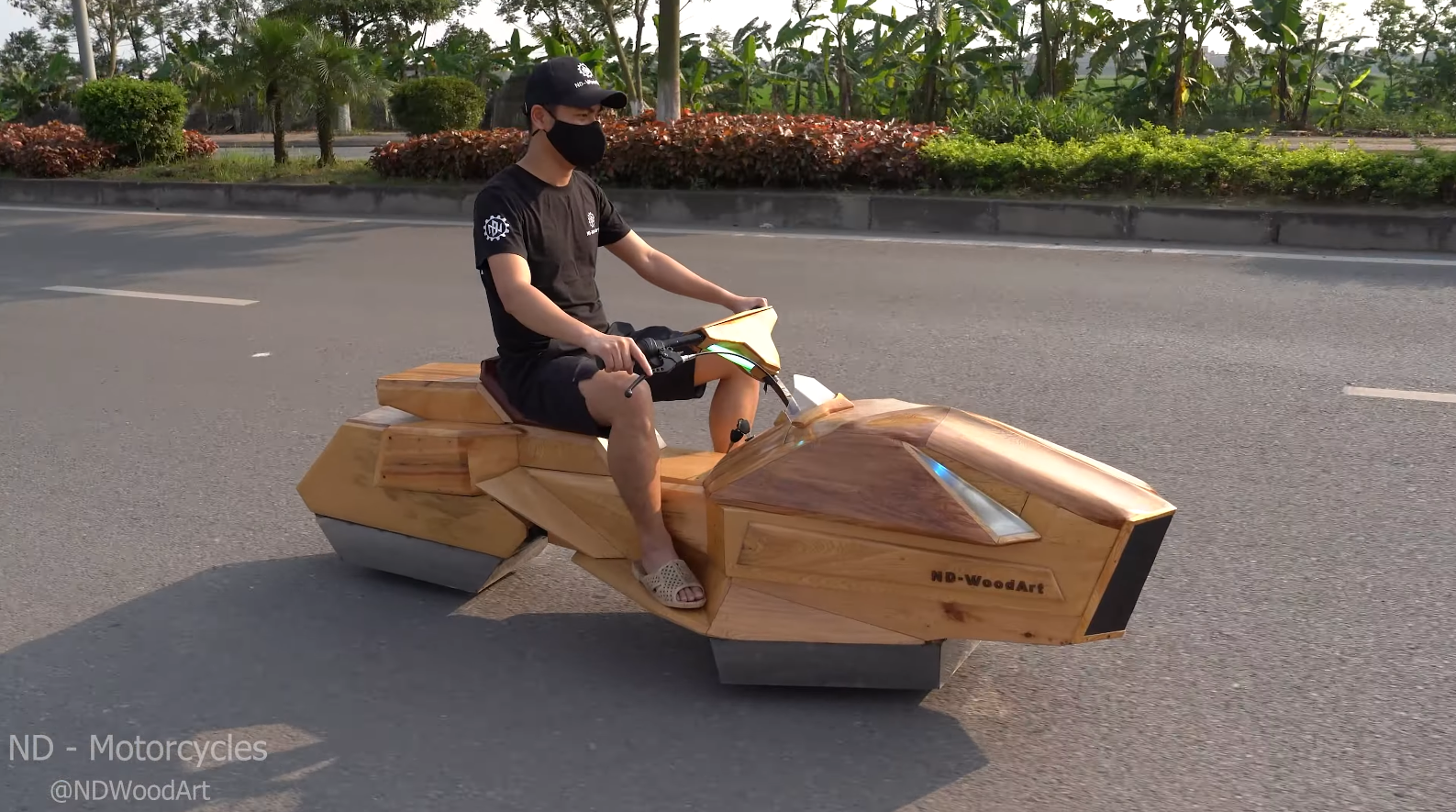 Kênh YouTube ND - Motorcycles tiếp tục ra sản phẩm mới. Lần này, thay vì làm những chiếc mô-tô cổ điển, anh Trương Văn Đạo quyết định làm một chiếc xe 2 bánh bằng gỗ theo kiểu độc lạ hơn tất cả.
